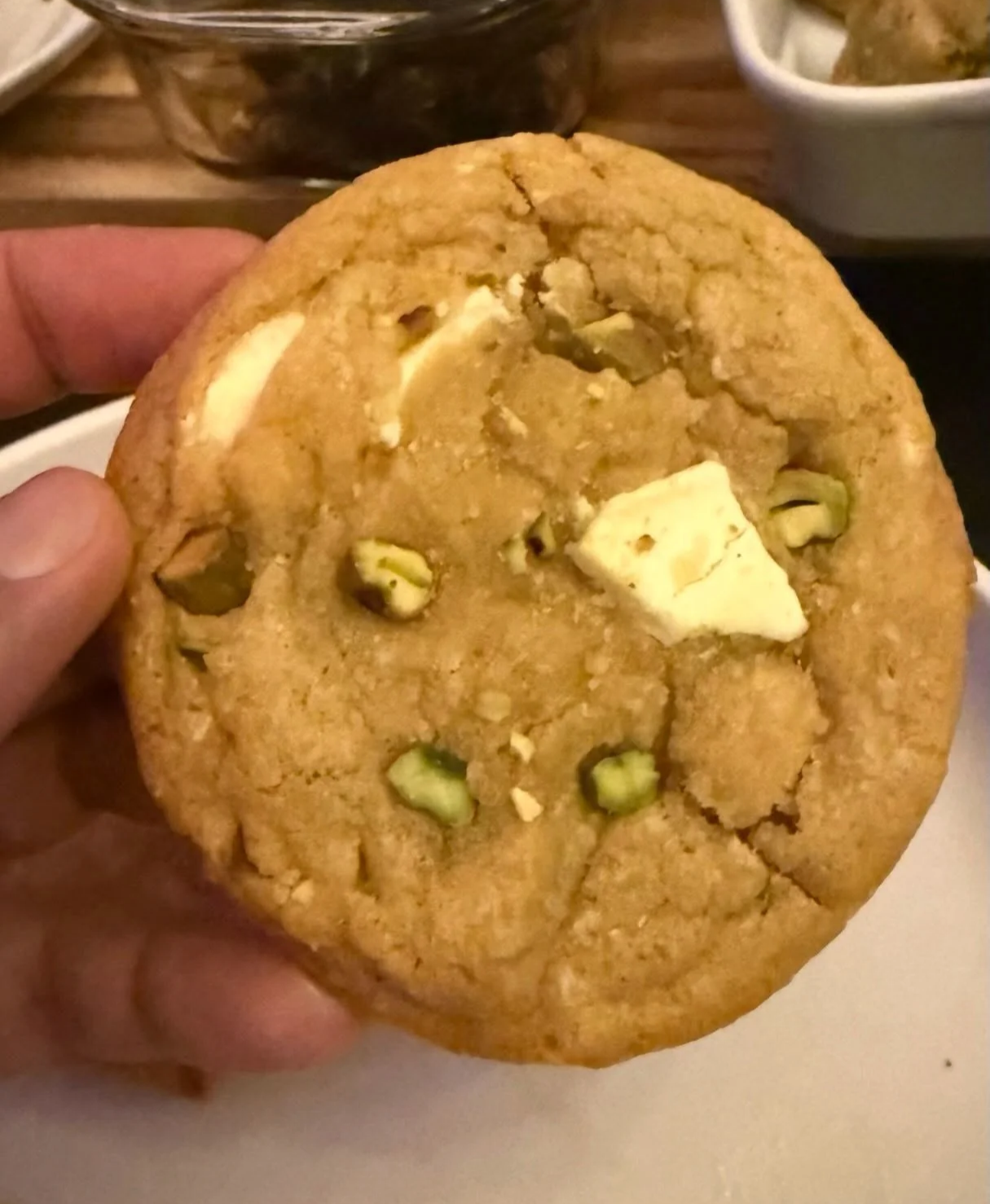 lemony pistachio white chocolate chip cookies